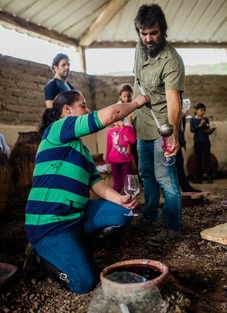 Ocotgono was founded in 2016 by husband and wife Marcelo Castro Vera and Mukasha Dadajonova in Guanajuato. Marcelo and Mukasha make wine for pleasure, to experiment, to have fun. This results in a product that breaks rules and pushes the boundaries of convention. The focus on making pre-industrial wines here is taken to extreme. The winery has no electricity or machinery of any kind, so everything is done by hand, from picking to crushing, pressing, and even bottling. All of the fermentations are carried out in buried handmade clay amphoras that were made in Mexico (from clay sourced locally). Winemaker Celia Alva is at the helm in the cellar and she has employed a nearly all-female team in the winery.